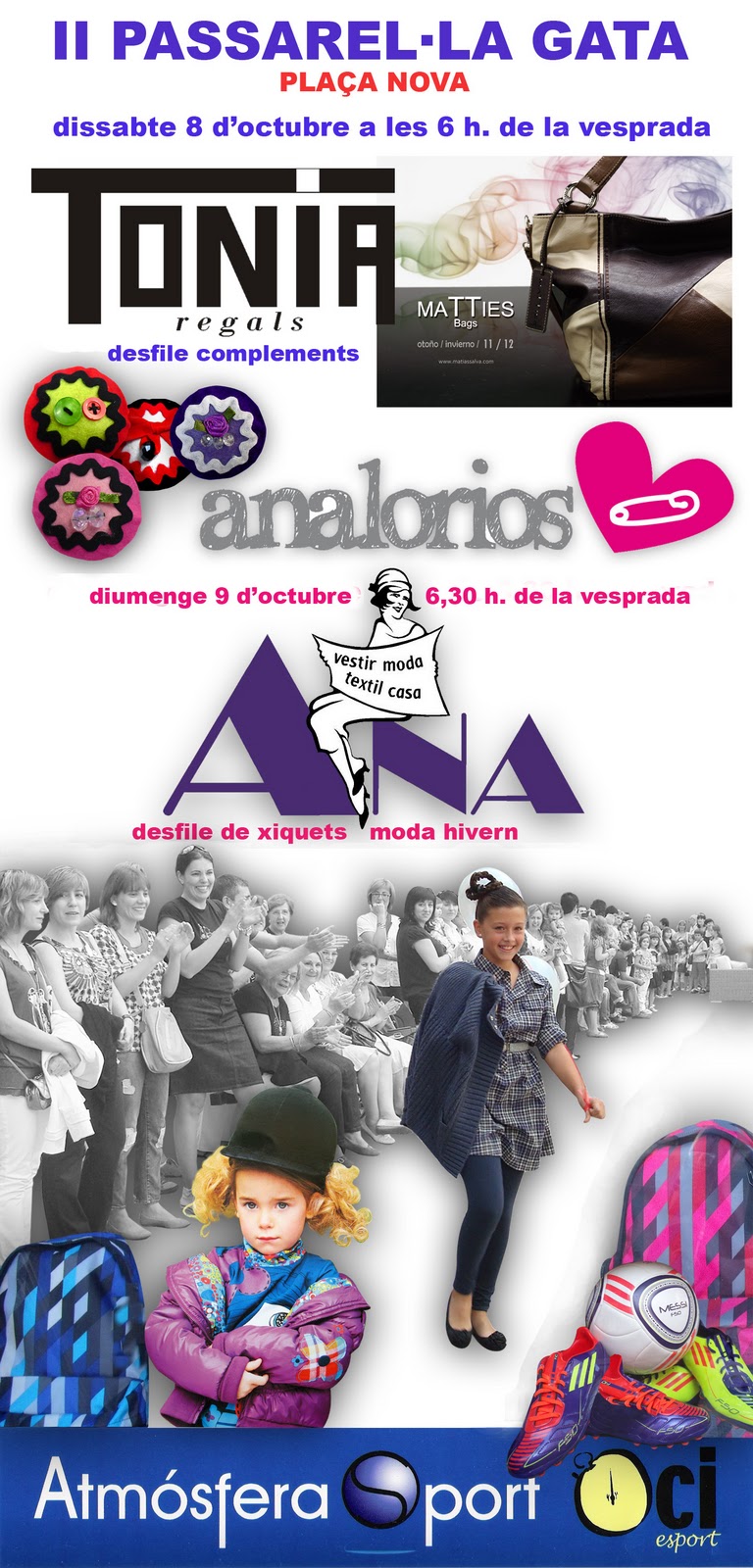 La moda también es una de las protagonistas de la Fira Gata al Carrer. Además de conocer las propuestas de los comercios de Gata en los diferentes estands, también podrás contemplar las últimas tendencias en moda, calzado y complementos en los desfiles de la pasarela de la Fira. El sábado y el domingo por la tarde, a partir de las 19.30, grandes y pequeños desfilarán con prendas y complementos de Tonia, Ana Moda, Analorios y Atmósfera Esport.