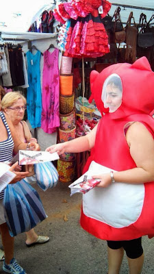 | Repartiendo folletos en el mercadillo de Dénia. |